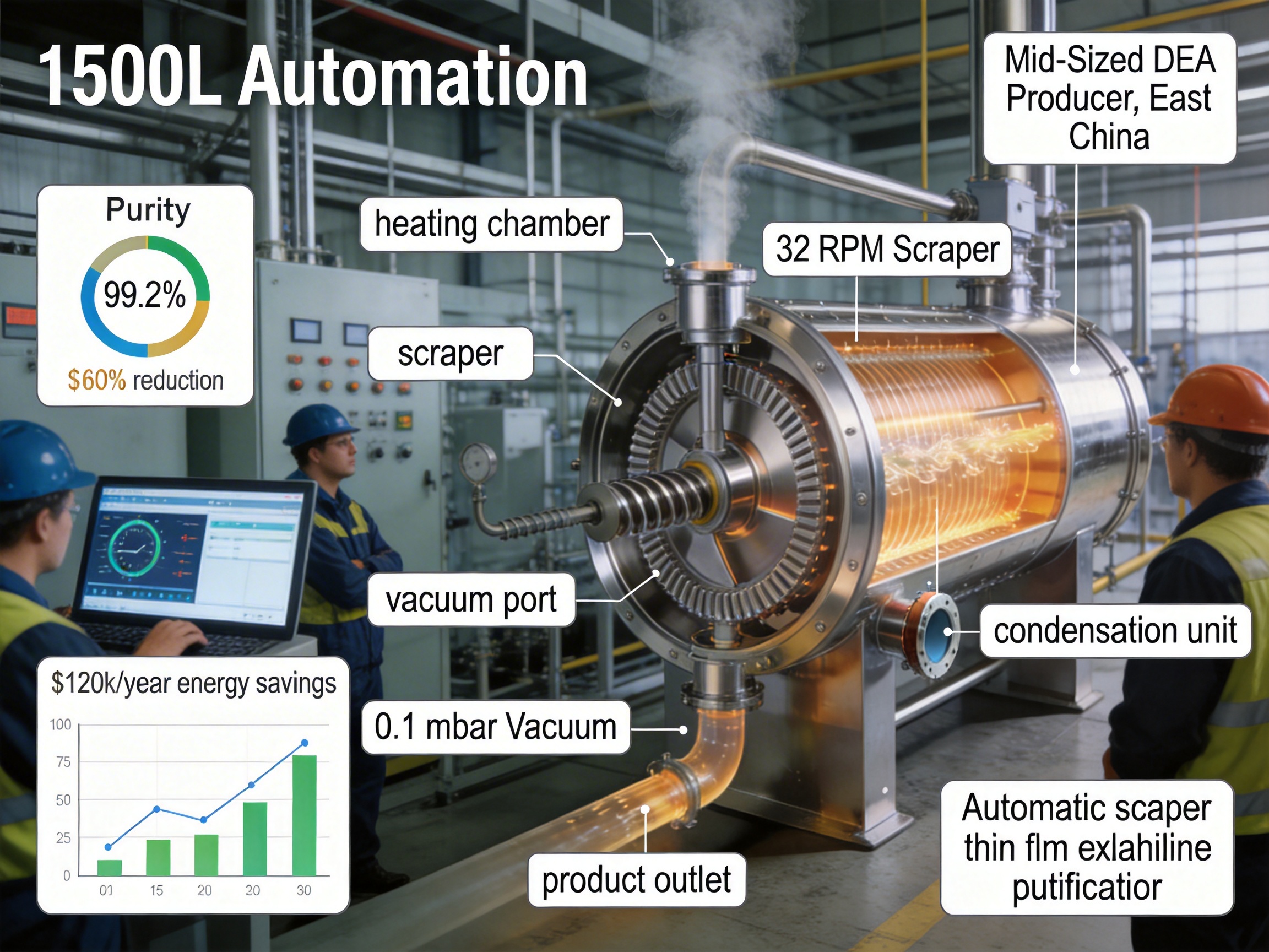 This case study demonstrates the tangible benefits of the automatic scrapper thin film evaporator for DEA producers, validating its effectiveness in real-world industrial settings.
