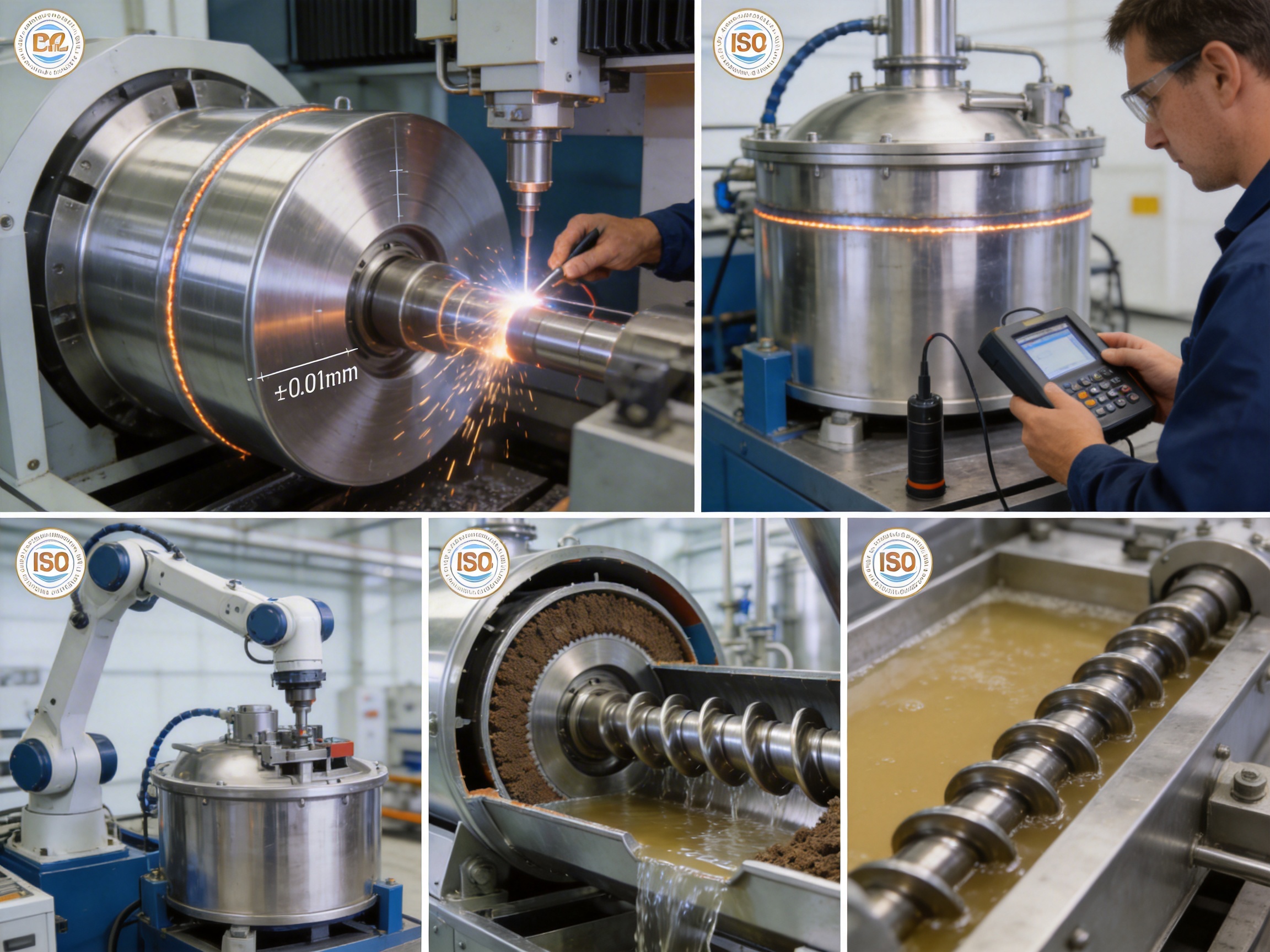 The performance of a spiral decanter centrifuge depends heavily on the precision of its manufacturing. Leading manufacturers employ state-of-the-art processes to ensure every component meets the highest standards of quality and durability: