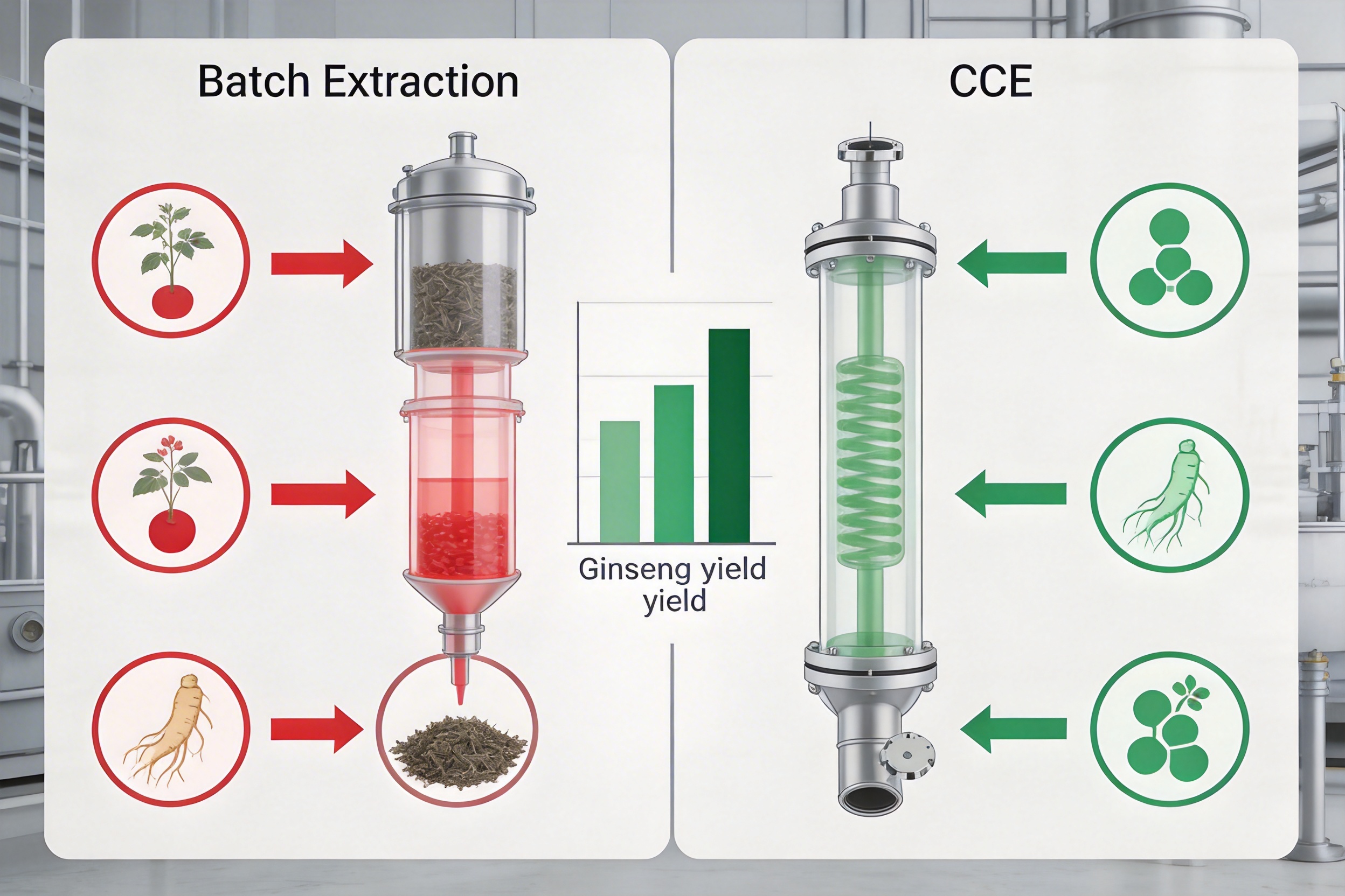 One of the most significant advantages of CCE is its ability to increase extraction yield while reducing processing time. In batch extraction, the solvent becomes saturated with extracted compounds, leading to diminishing returns as the process progresses. In contrast, CCE’s countercurrent flow ensures that the solvent is always at a lower concentration relative to the plant material, driving mass transfer and maximizing the amount of active ingredients extracted. Studies have shown that CCE can increase yield by 15–30% compared to batch methods for many plant materials, including herbs like ginseng, astragalus, and green tea.