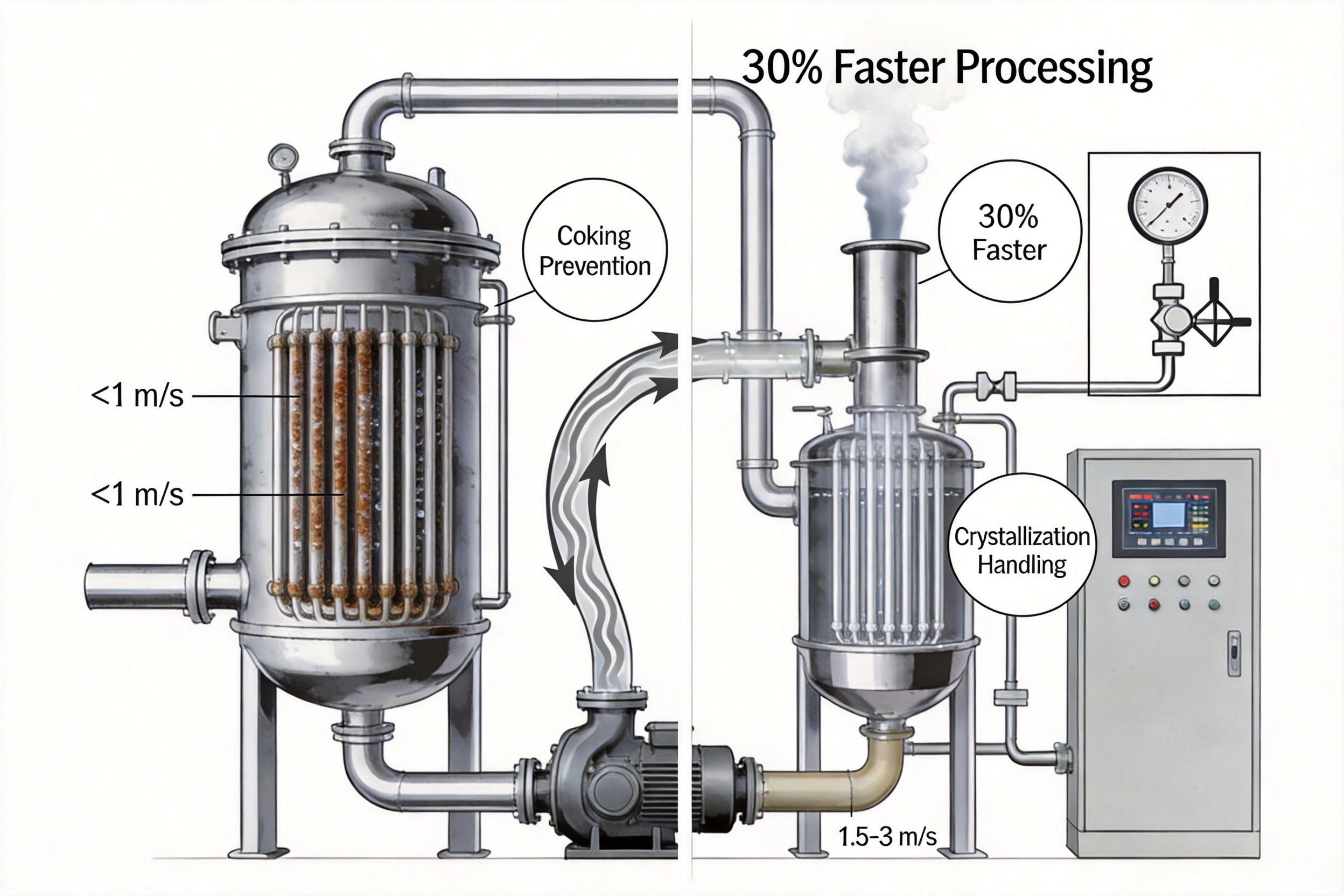 2. Forced Circulation: The pump drives material through heating tubes at high speed, minimizing residence time on hot surfaces.