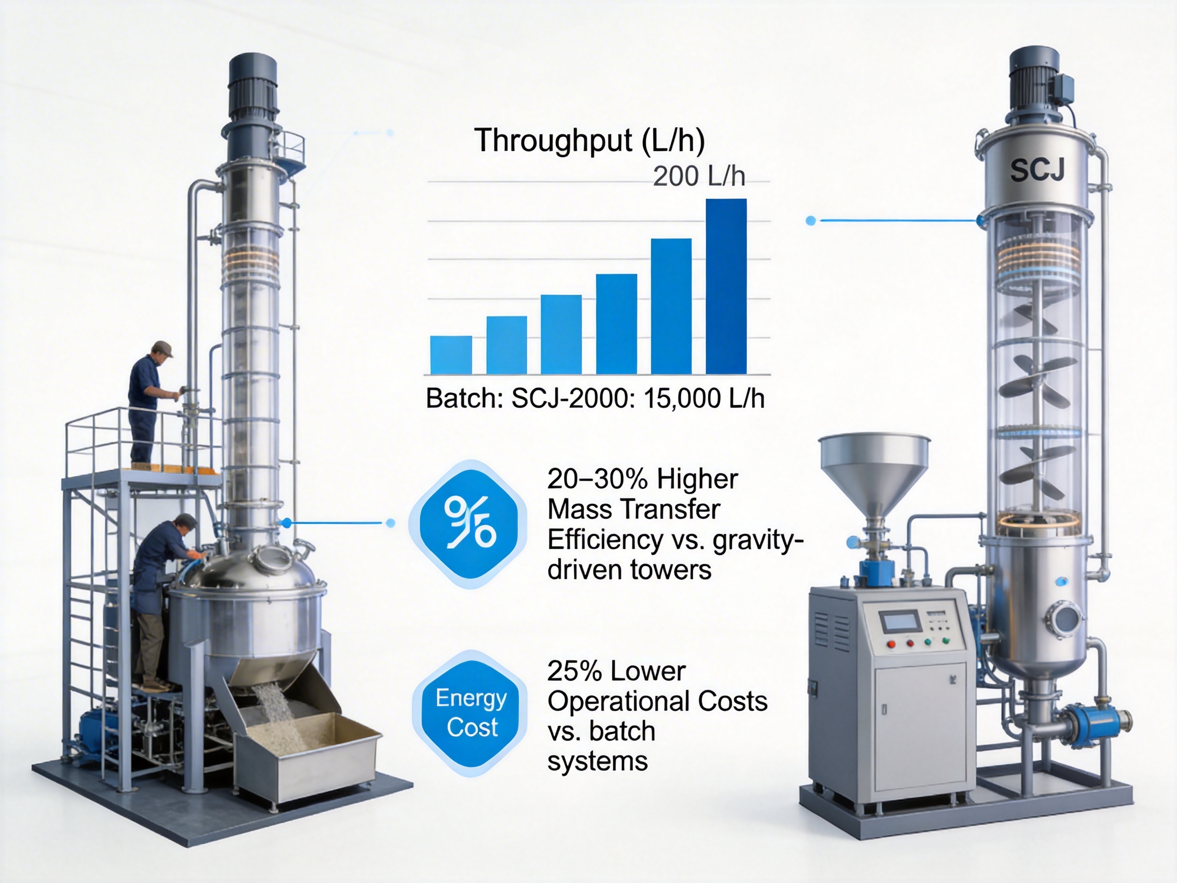 Modern solvent extraction towers are designed with scalability in mind. The SCJ series ranges from lab-scale models (SCJ-80, 25–40 L/h) to industrial-scale units (SCJ-2000, 9,000–15,000 L/h). This allows clients to test processes at the lab scale before scaling up to production, reducing the risk of costly errors. Competitors often offer limited scalability, forcing clients to switch vendors for different production levels.